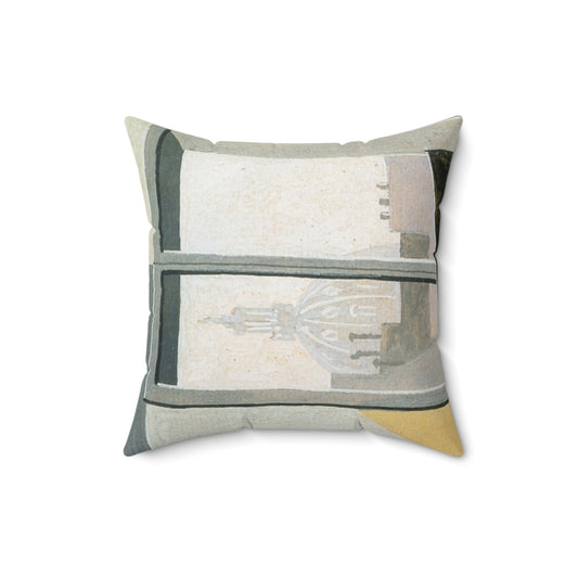 Square Pillow for Music Lovers- Still Life in Front of a Window overlooking the Eglise St. Augustin (1919)