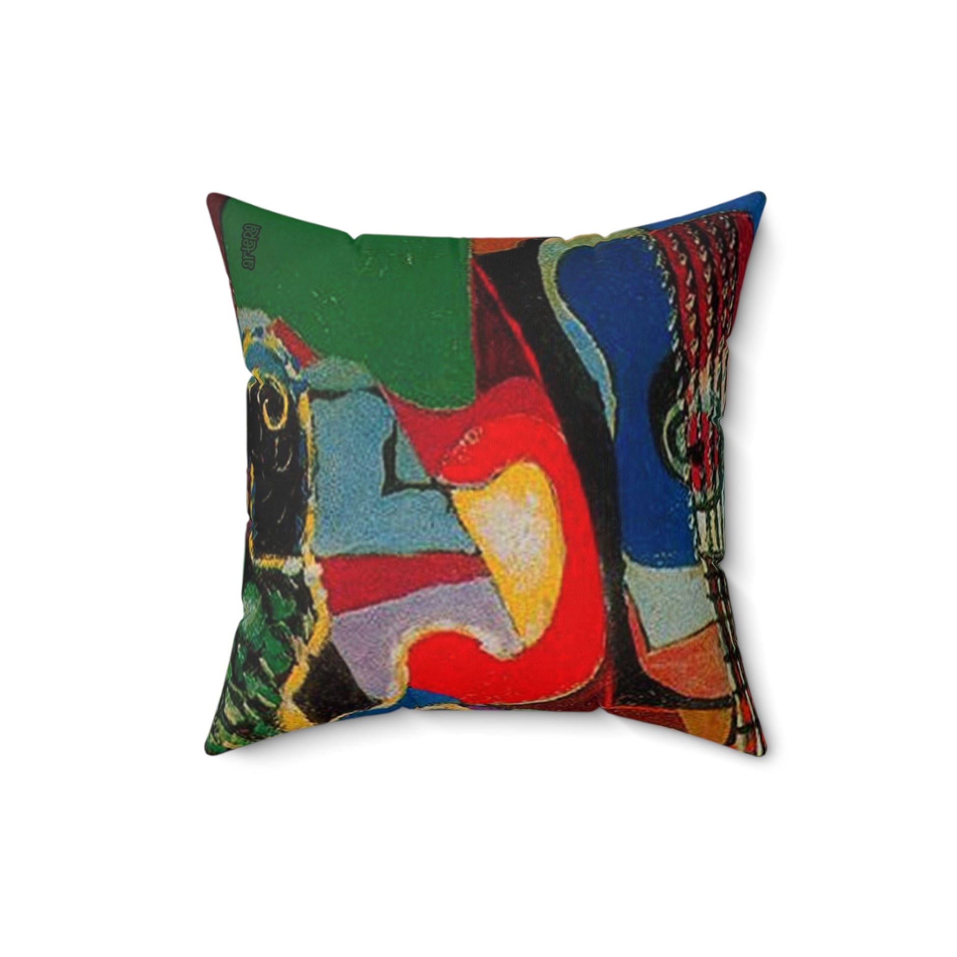 Square Pillow for Music Lovers- Pablo Picasso, Guitar, bottle, fruit dish and glass on the table (1919)