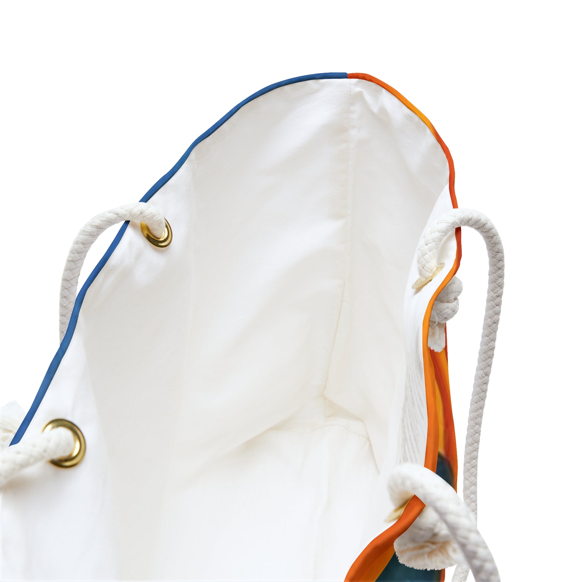 Crafted from durable spun polyester, this spacious bag is built for both style and practicality. The cotton rope handles add a touch of comfort and elegance, making it an effortless companion for weekend getaways, beach days, or daily adventures. Whether you’re exploring the coast, heading to the gym, or setting off on a quick escape, this bag offers both function and artistic flair.